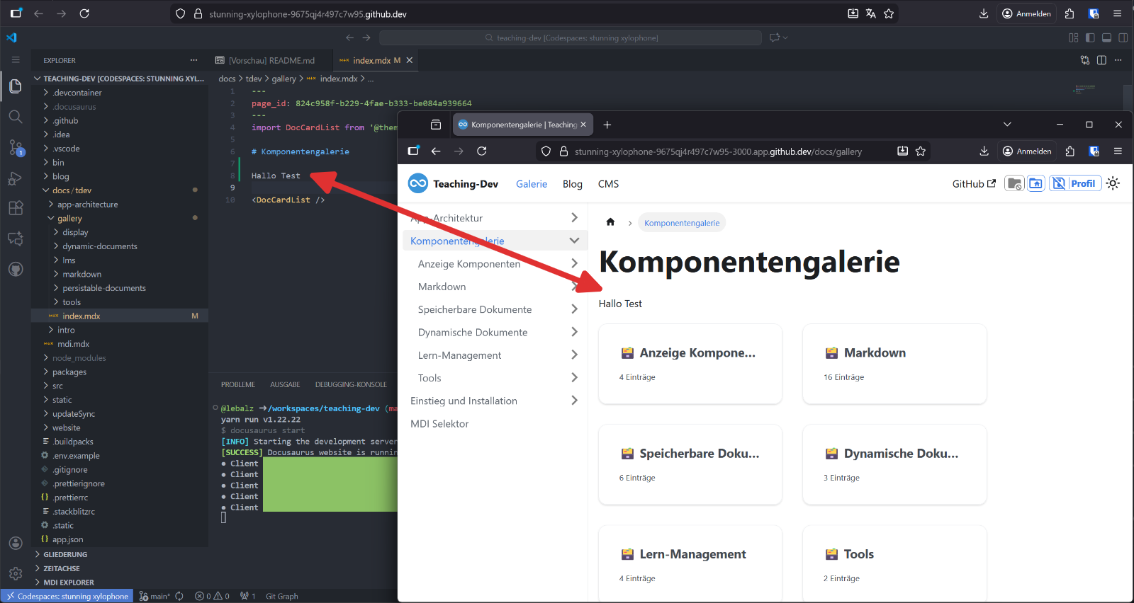 - Im Codespace können nun Änderungen an der Webseite vorgenommen werden.